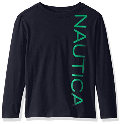 Nautica Toddler Boy’s Long Sleeve Crew Neck Rib Logo Tee Shirt, Sport Navy, 4T