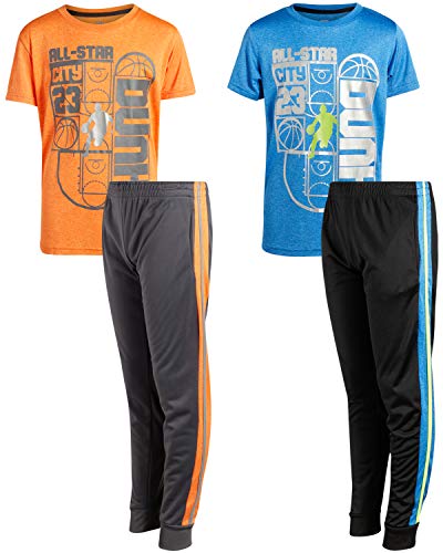 Pro Athlete Boys’ 4-Piece Performance Athletic Jogger Set with 2 Short Sleeve Tops and 2 Pairs of Pants, Size 10/12, All Star Dunk’