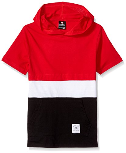 Southpole Boys Short Sleeve Hooded Fashion Tee (Age8-20), red/Color Block, Medium