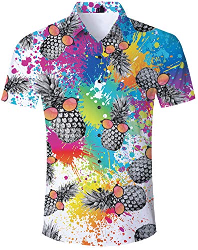 Jubestar Men’s Hawaiian Shirt 3D Tropical Summer Aloha Short Sleeve Button Down Shirt