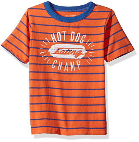 The Children’s Place Baby Boys’ Toddler Li’l Striped Graphic T-Shirt, Fusion Orange 5T