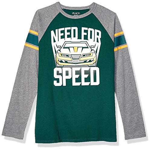 The Children’s Place Boys’ Big Graphic Raglan Long Sleeve Top, SPRUCESHAD, XL (14)