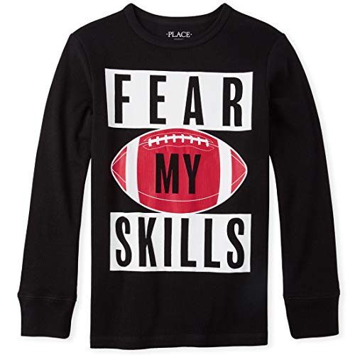 The Children’s Place Boys’ Big Graphic Thermal Tee, Black, L (10/12)