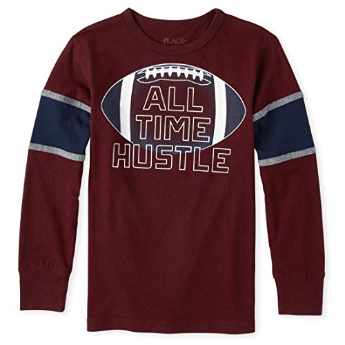 The Children’s Place Boys’ Big Long Sleeve Graphic T-Shirt, Redwood Football, XL (14)