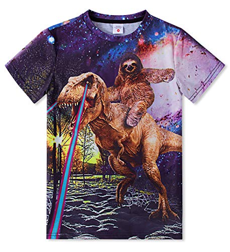TUONROAD Children’s Short Sleeve Laser Dinosaur Sunset Starry T-Shirt Outdoor Loose-Fit Black Navy Tee Assorted Color Summer Casual Daily Wear 10Y 11Y 12Y(Dinosaur & Sloth,Medium)