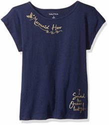 Update her wardrobe with a wide range of fashion forward graphic tees from Nautica. Product Features Mermaid hero graphic tee Scoop neckline Gold glitter details