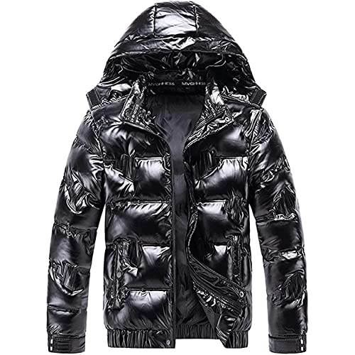 Dgoopd Winter Warm Men Puffer Coat Waterproof Lightweight Down Jacket Shiny Hooded Reflective Down Jacket Padded Jacket Coat Black