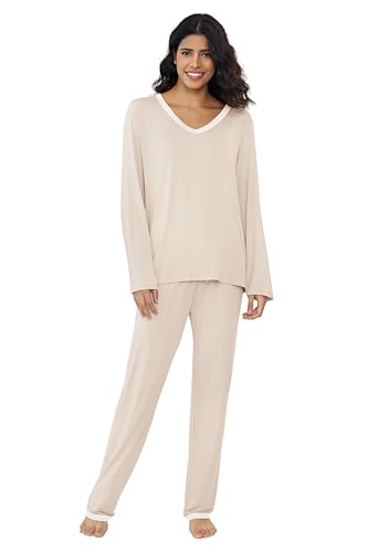 - 【Fabric】: Super Cooling pajama set for women is made of 95% viscose made from bamboo. Lightweight, silky and durable, you can hardly feel its existence while wearing. Moisture wicking fabric is perfect for people who suffer from night sweat