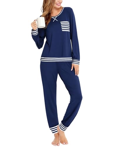 - Casual Style: Contrast striped on chest pocket and sleeve cuff, make the women’s sleepwear more casual for sleepwear or daily wearing. solid colors,Simple yet timeless elements keep you stylish, this pajama top and bottoms set is a great nighttime combo to relax in