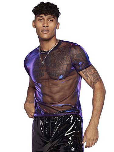 Floerns Men’s Sheer Mesh Short Sleeve Glitter Crew Neck Club Tee Shirt Top Violet Purple L