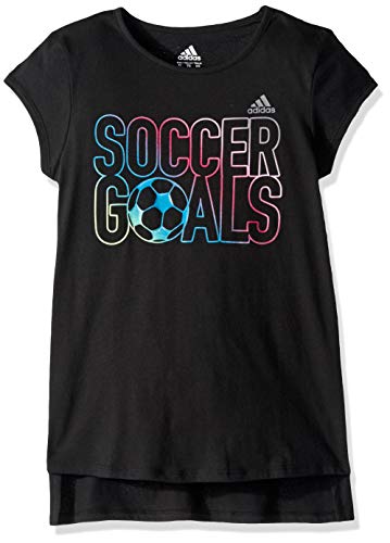 adidas Girl Big Short Sleeve Graphic Tee T-Shirt, Soccer Goals Black, XL (14/16)