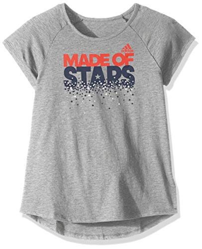 adidas Girl Big Short Sleeve Graphic Tee T-Shirt, Vented Grey Heather, L (12/14)
