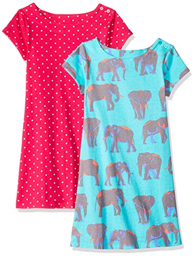 Amazon Brand – Spotted Zebra Girls’ Toddler 2-Pack Knit Short-Sleeve A-Line T-Shirt Dresses, Elephants/Dots, 3T