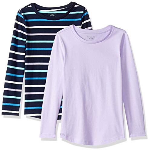 Amazon Essentials Big Girls’ 2-Pack Long-Sleeve Tees, Multi Stripe Navy and Lilac, M(8)