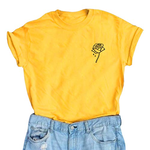 BLACKOO Women Cute T Shirt Juniors Graphic Tops Teen Girls Tee Yellow X-Large