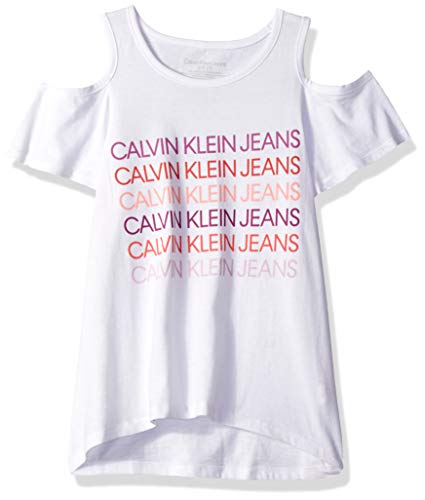Calvin Klein Big Girl’s Big Girls Graphic Tee Shirt, multi/white, L12/14