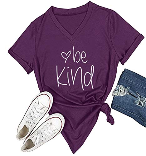 DANVOUY Womens T Shirt Casual Cotton Short Sleeve V-Neck Graphic T-Shirt Tops Tees Purple Small