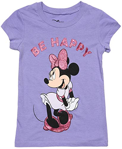 Disney Girls T-Shirt Minnie Mouse Glitter Graphic Print (Light Purple, Small)