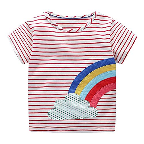 DYW Toddler Girls Short Sleeve T-Shirt Round Neck Cute Graphic Cotton Tees 2-7 Years (Rainbow Stripe, 6T)