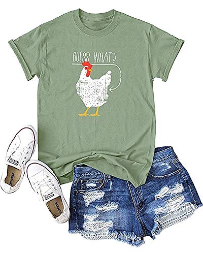 Haircloud Women Guess What Chicken Butt Shirt Funny Joking Chicken T-Shirt