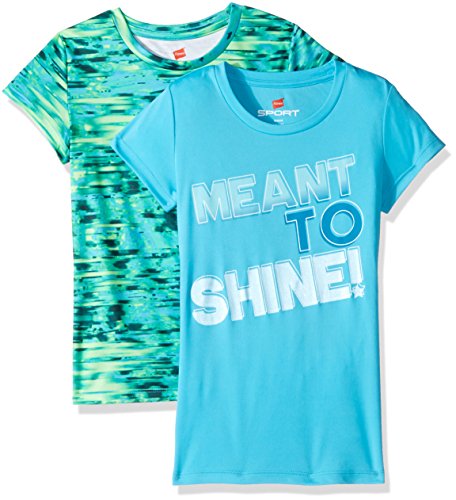Hanes Girls’ Big Sport Graphic & Printed Performance Tee (Pack of 2), Meant to Shine & Speed Dash/Cool Me Blue, XL