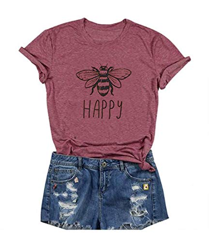 - Feature: Happy Bees T Shirt Women Retro Graphic Yellow Casual Tee Tops