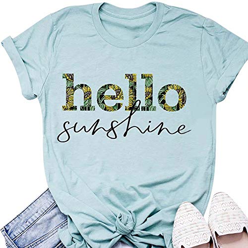 Hello Sunshine Graphic Tee Shirts for Women Graphic Tee Shirts Letter Print Tee Shirts Top
