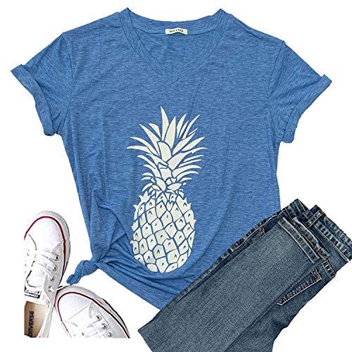 Hellopopgo Pineapple Printed Funny T Shirt Women’s Summer Tops Fruits Lover Short Sleeve Graphic Tees Tops Girl (Medium, Sky Blue)