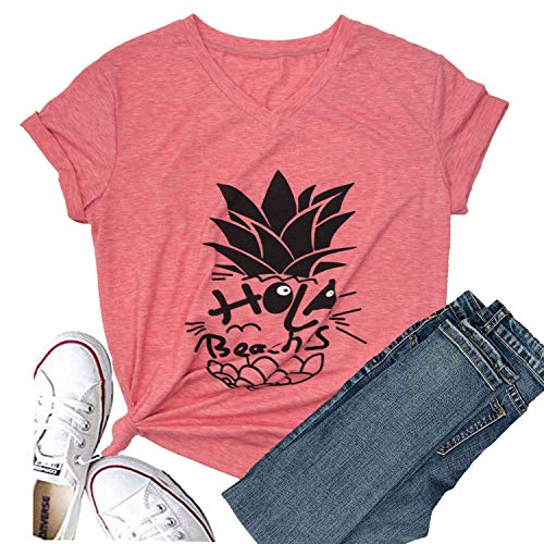 Hellopopgo Pineapple Printed Funny T Shirt Women’s Summer Tops Fruits Lover Short Sleeve Graphic Tees Tops Girl (Small, Red-Black Pineapple)