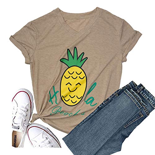 Hellopopgo Pineapple Printed Funny T Shirt Women’s Summer Tops Fruits Lover Short Sleeve Graphic Tees Tops Girl (X-Large, Light Brown-Yellow Pineapple)