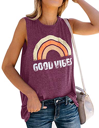 - ★【 FEATURES 】Sleeveless Tanks Top,Crew Neck,Loose Fit,Good Vibes and Rainbow Print,ultra comfy shirt for your workout at the Gym.