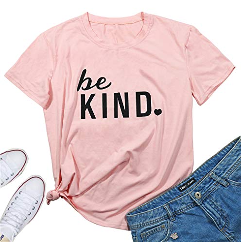 JINTING Be Kind Tshirt Cute Graphic Tee Shirt for Women Teen Girls Juniors Short Sleeve Letter Print Cute Graphic Tee Shirt Size L (Pink)