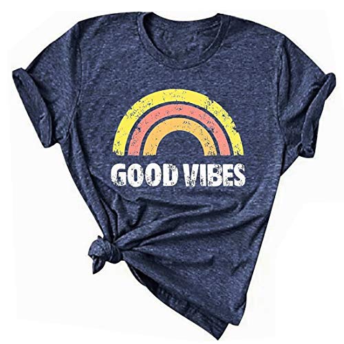 JINTING Good Vibes Graphic Tee Shirt for Women Teen Girls Graphic Short Sleeve T Shirt Top with Funny Sayings (M, Blue)