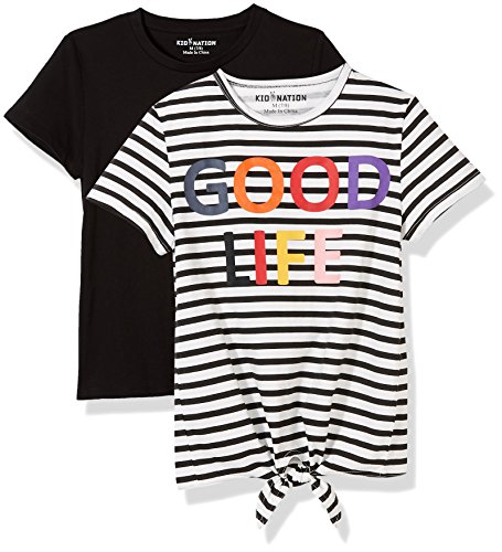 - Pack of two tees including solid-color and graphic-print shirt with tie front