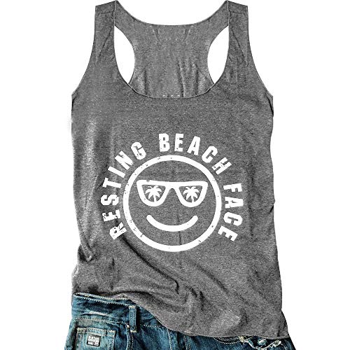 - ❤【Tank Top Detail】 Resting Beach Face Letters, Sleeveless Strap Funny Tank Top for Women,Teens and Girls