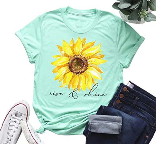 MYHALF Women’s Cute Funny Sunflower Graphic Print Tee Teen Girls Casual Short Sleeve T Shirt Tops