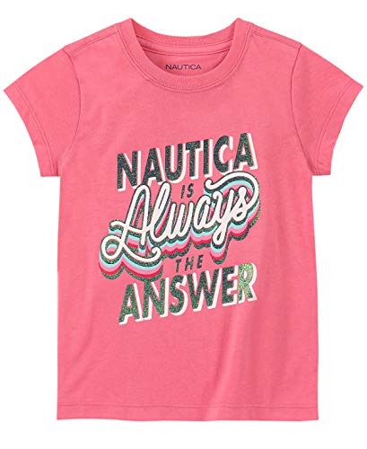 Nautica Little Girls’ Short Sleeve Graphic Tee, Soft Pink Answer, 5