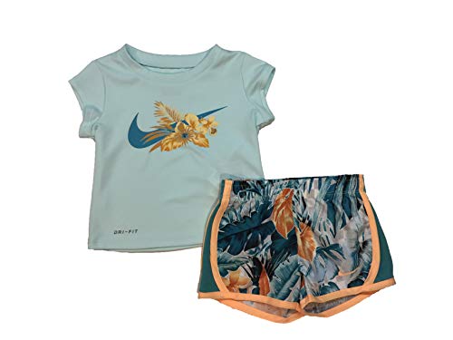 Nike Girl’s Graphic-Print T-Shirt & Shorts 2 Piece Set (Cabana(16E878-C4V)/Yellow, 18 Months)
