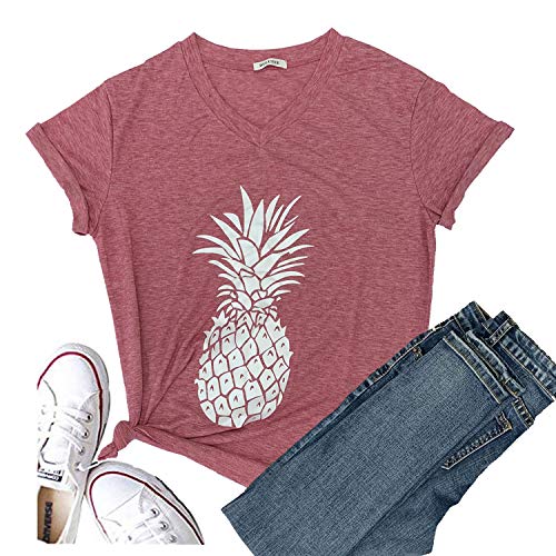 Pineapple Printed Funny T Shirt Women’s Summer Tops Fruits Lover Short Sleeve Graphic Tees Casual Tops Girl (Small, Red1)