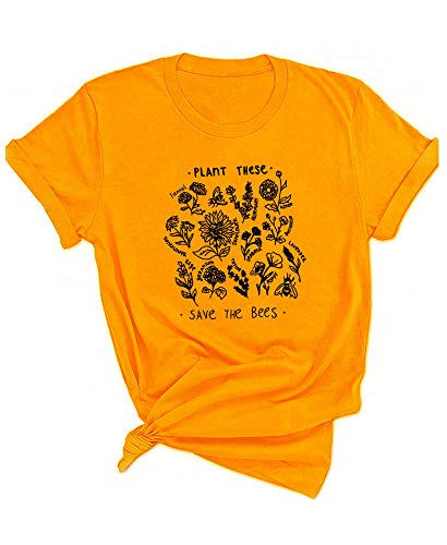 - Womens Plant These Save The Bees Funny T-shirt Short Sleeve Graphic Tees Shirts