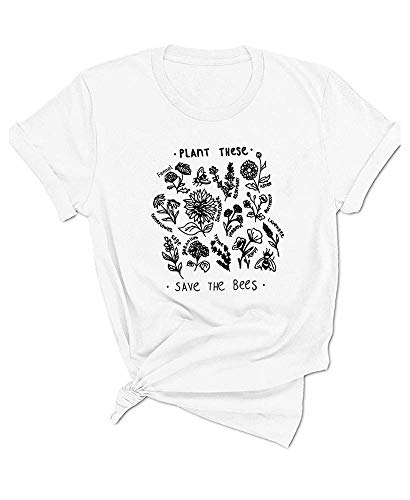 • Womens Plant These Save The Bees Funny T-shirt Short Sleeve Graphic Tees Shirts