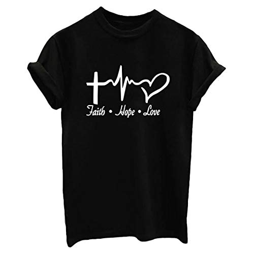ROSEPARK Women Faith Hope Love Funny T shirt Graphic Teen Girl Tee Black Large