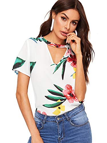 - Chocker v neck, graphic printed t-shirts, cutout, basic tops, summer shirt