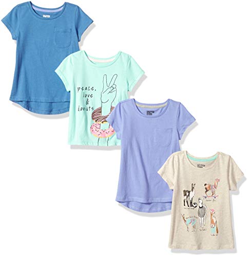 Spotted Zebra Little Girls’ 4-Pack Short-Sleeve T-Shirts, Llama Drama, X-Small (4-5)