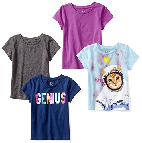 Spotted Zebra Toddler Girls’ 4-Pack Short-Sleeve T-Shirts, Space, 4T