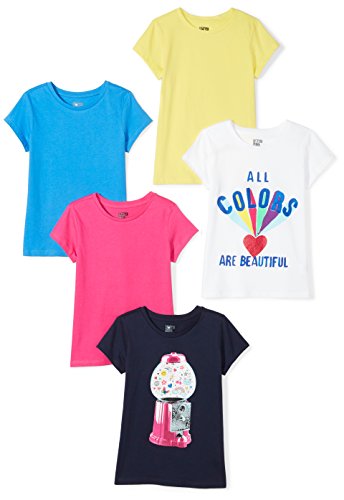 Spotted Zebra Toddler Girls’ 5-Pack Short-Sleeve T-Shirts, Colors Are Beautiful, 4T