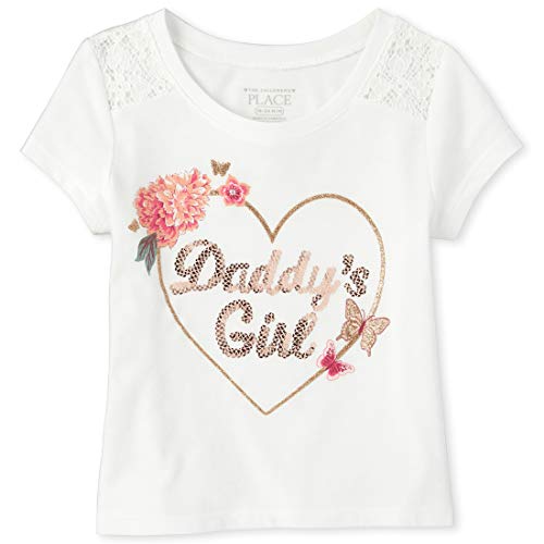 The Children’s Place Baby Girls Graphic Short Sleeve Lace T-Shirt, Simplywht, 4T