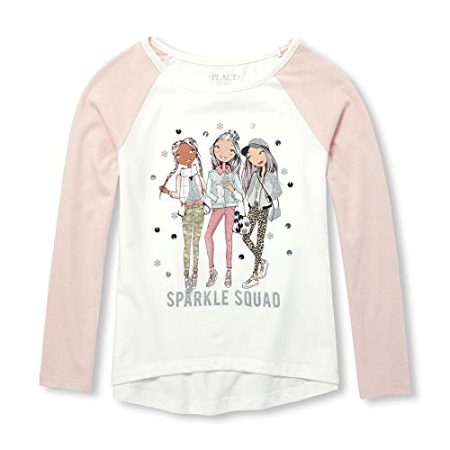 The Children’s Place Big Girls Long Sleeve Graphic Tops, Soft Rose, L (10/12)