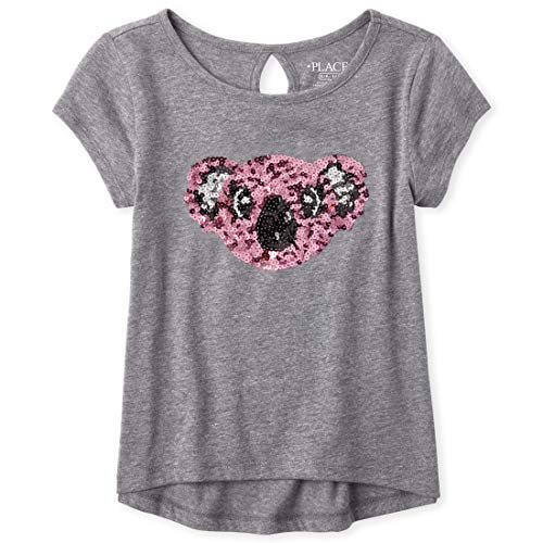 The Children’s Place Girls’ Big Graphic Short Sleeve Keyhole T-Shirt, Heather/T Hound, L (10/12)