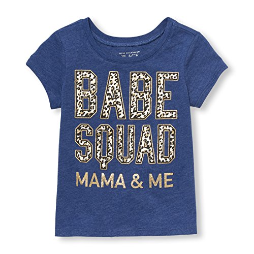 The Children’s Place Girls’ Toddler Squad Short Sleeve Graphic Tee, Sample/dye Galaxy Navy 2T